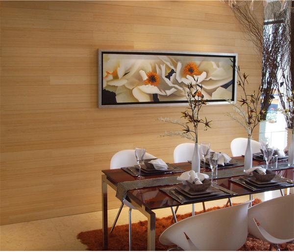 桃花江竹材科技研发的各类竹制材料广泛适用于建筑装饰、商业空间及家庭装修。根据装饰风格、效果及设计要求的不同,桃花江可以进行特殊产品的定制化,满足个性化需求。竹装饰板材相对一般实木的力学强度较大,自然机理表现效果更好,更能体现东方文化元素,是目前装饰行业高端项目设计中经常用到的材料。